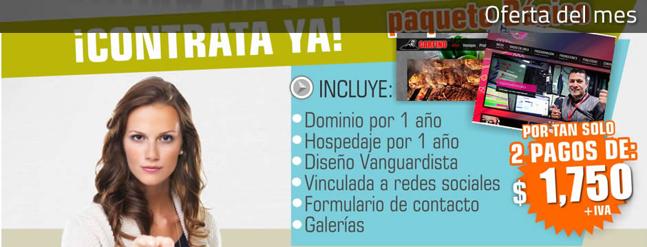 12 meses sin intereses en nuestros paquetes avanzados de diseño web. Ahora si no hay pretextos para tener una mega página para tu negocio.
