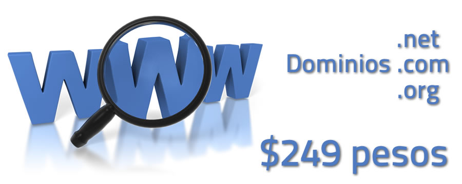 Aprovecha este mes las increíbles promociones que tenemos, dominios desde 249 pesos anuales, y te regalamos cupones Google AdWords para tu publicidad en este portal de búsqueda.